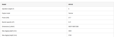 Equipped with a strong and dependable Yanmar engine, the HW-60 delivers reliable performance and durability. The engine model ensures optimal power output of 37.7KW, providing the necessary strength to handle demanding tasks with ease.